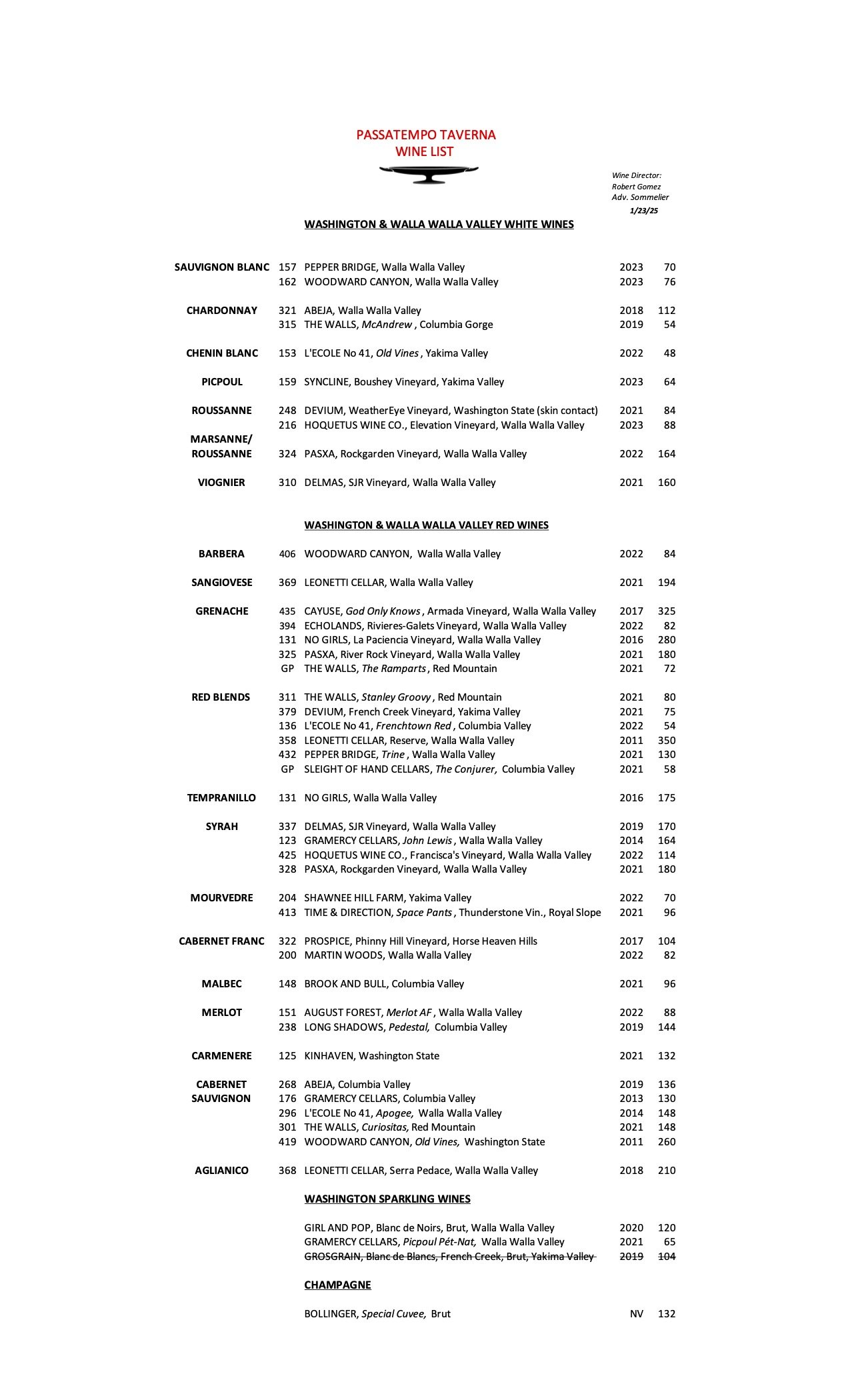 Wine Menu - DINE IN ONLY